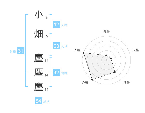 小畑 塵塵塵さんの外格は31画の5点!