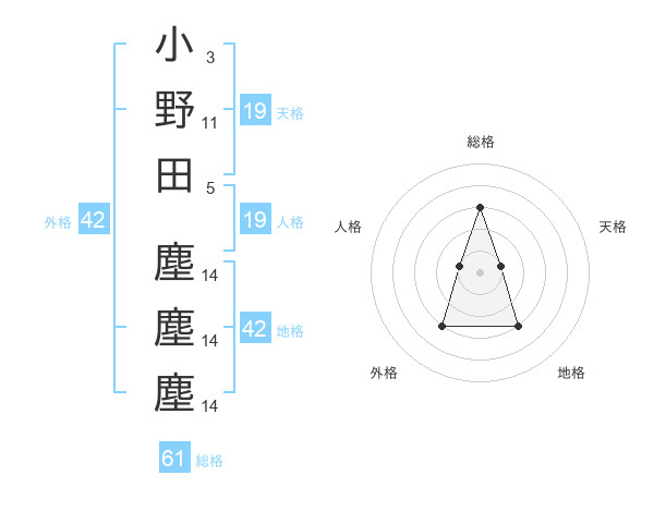 小野田 塵塵塵さんの総格は61画の3点!