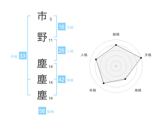 市野 塵塵塵さんを姓名の画数から五運を鑑定