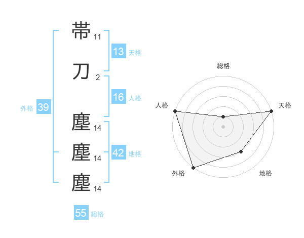 帯刀 塵塵塵さんを姓名の画数から五運を鑑定