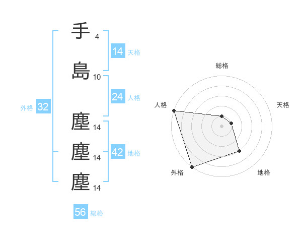 手島 塵塵塵さんを姓名の画数から五運を鑑定