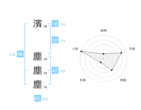 濱 塵塵塵さんを姓名の画数から五運を鑑定
