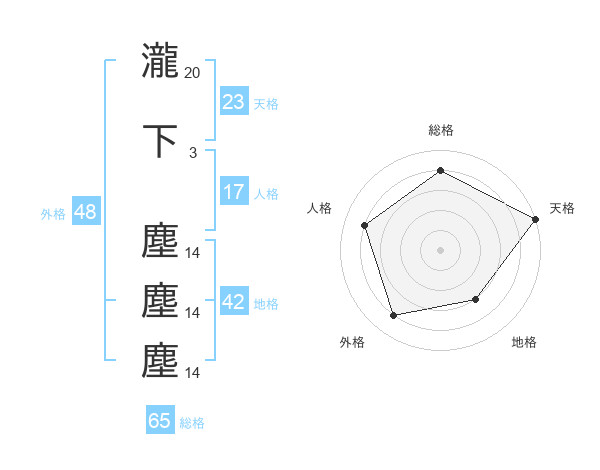 瀧下 塵塵塵さんを姓名の画数から五運を鑑定