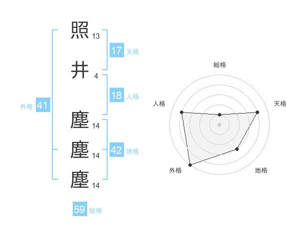 照井 塵塵塵さんを姓名の画数から五運を鑑定