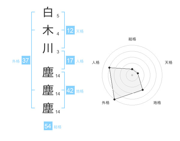 白木川 塵塵塵さんの天格は12画の1点