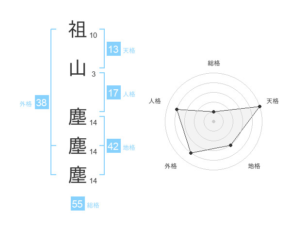 祖山 塵塵塵さんの総格は55画の1点!