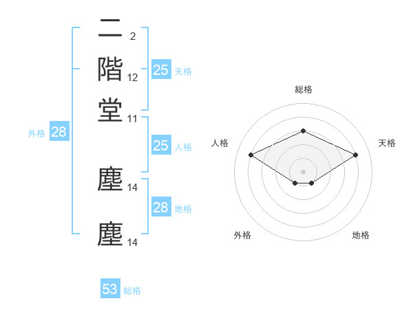 二階堂 塵塵さんの外格は28画の1点!