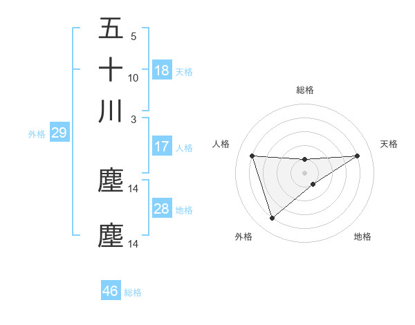 五十川 塵塵さんの総格は46画の1点!