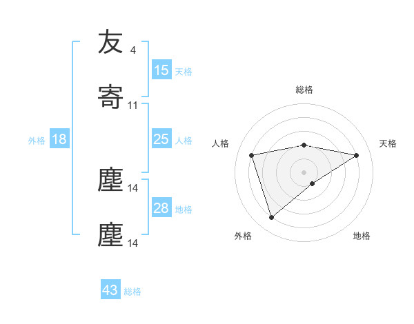友寄 塵塵さんの天格は15画の4点!