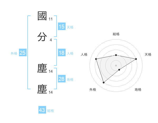 國分 塵塵さんの総格は43画の2点!