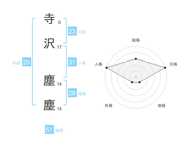 寺沢 塵塵さんを姓名の画数から五運を鑑定