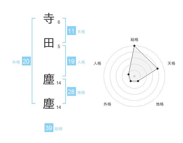 寺田 塵塵さんの総格は39画の5点!
