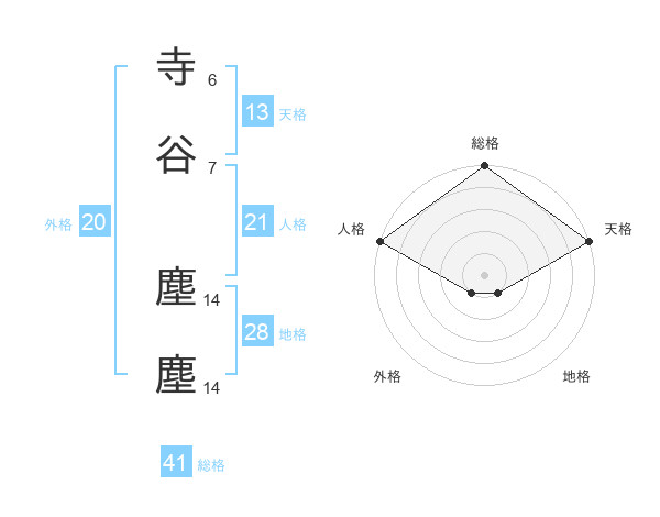 寺谷 塵塵さんの総格は41画の5点!