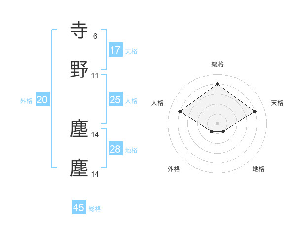 寺野 塵塵さんを姓名の画数から五運を鑑定