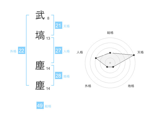 武塙 塵塵さんの天格は21画の5点!