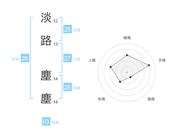 淡路 塵塵さんを姓名の画数から五運を鑑定