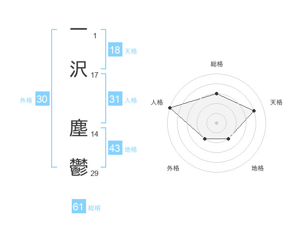 一沢 塵鬱さんの総格は61画の3点!