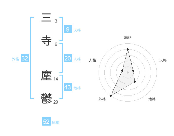 三寺 塵鬱さんを姓名の画数から五運を鑑定