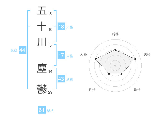 五十川 塵鬱さんを姓名の画数から五運を鑑定