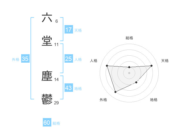 六堂 塵鬱さんの総格は60画の1点!