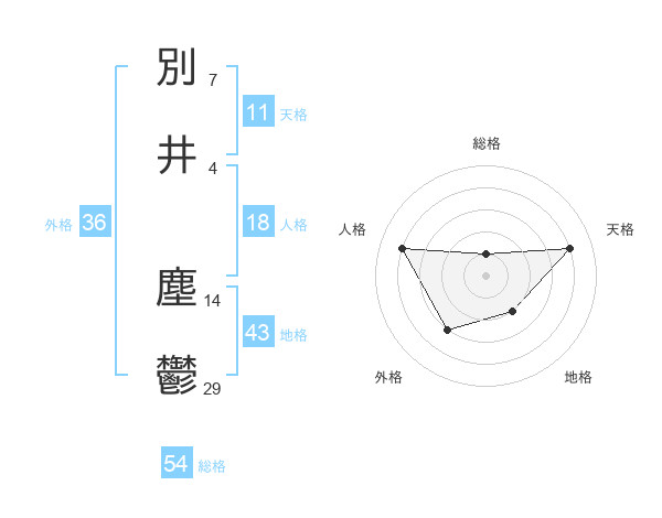 別井 塵鬱さんを姓名の画数から五運を鑑定