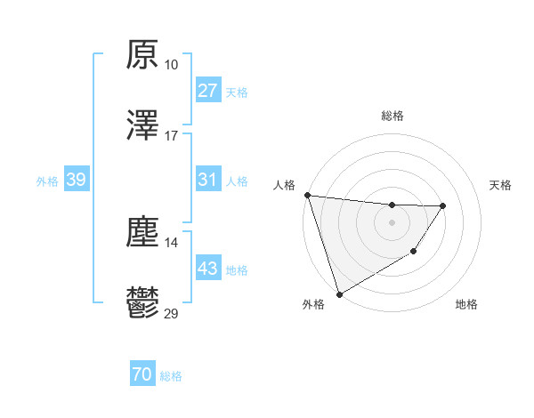 原澤 塵鬱さんの総格は70画の1点!