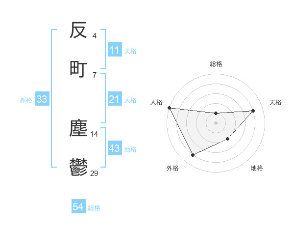反町 塵鬱さんの天格は11画の4点!