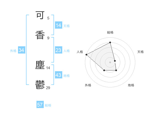 可香 塵鬱さんを姓名の画数から五運を鑑定