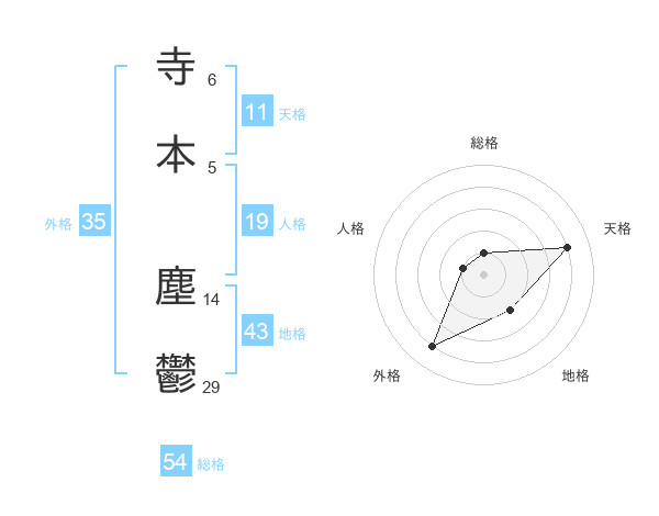寺本 塵鬱さんの総格は54画の1点!