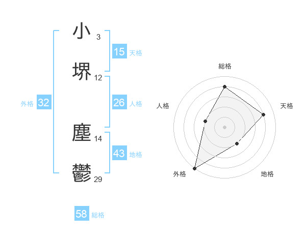 小堺 塵鬱さんを姓名の画数から五運を鑑定