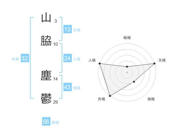 山脇 塵鬱さんの天格は13画の5点!