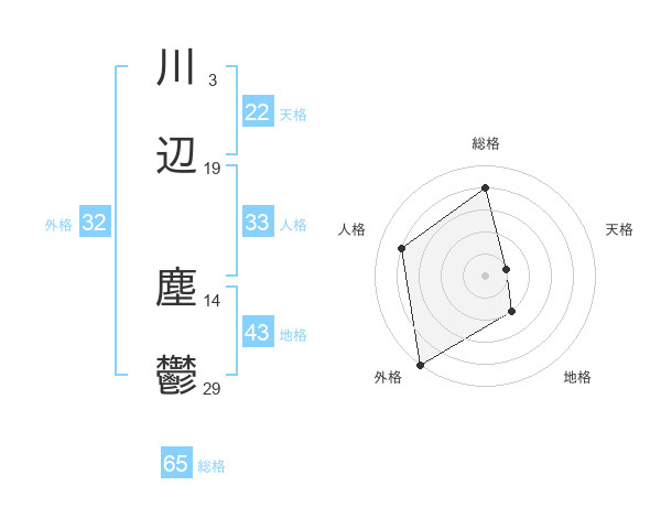 川辺 塵鬱さんを姓名の画数から五運を鑑定
