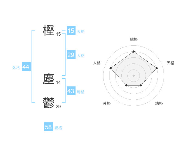 樫 塵鬱さんを姓名の画数から五運を鑑定