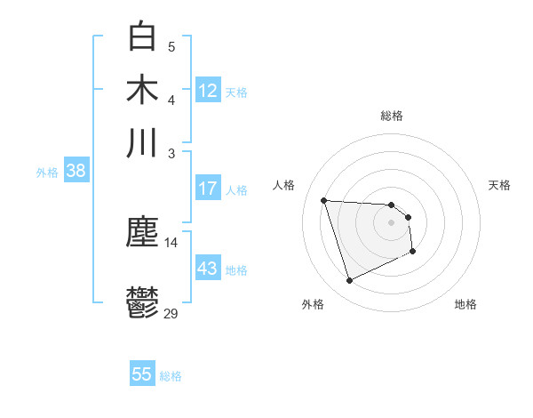 白木川 塵鬱さんを姓名の画数から五運を鑑定