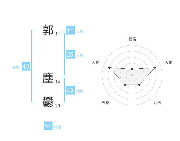郭 塵鬱さんの天格は11画の4点!