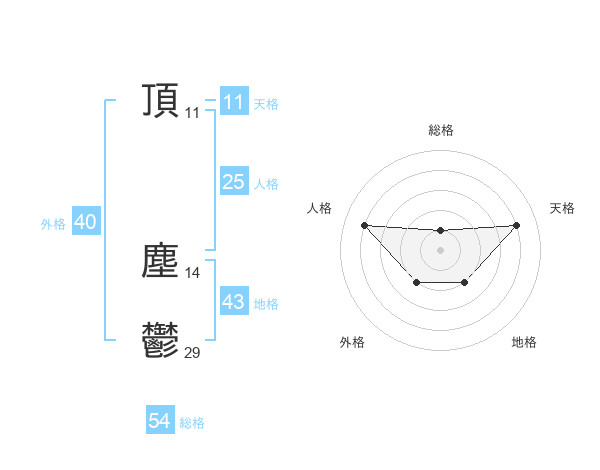 頂 塵鬱さんを姓名の画数から五運を鑑定