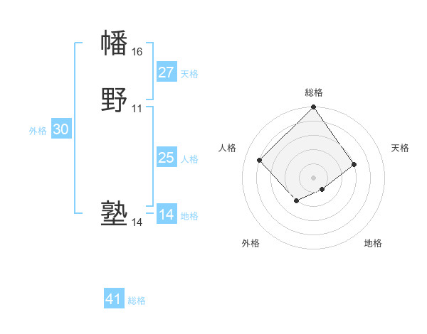 幡野 塾さんの総格は41画の5点!