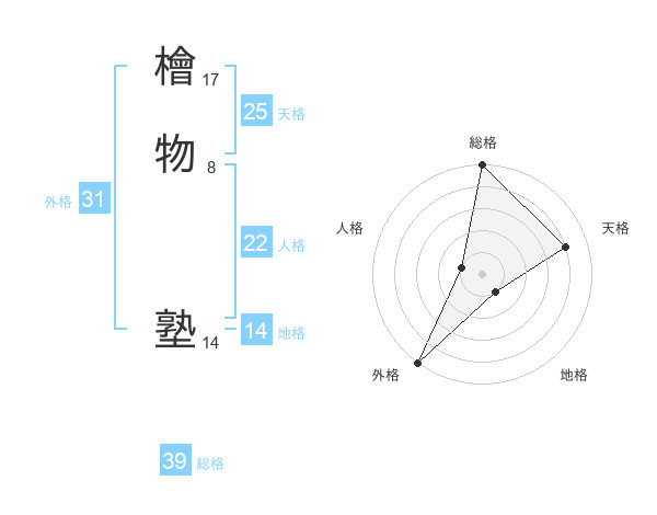 檜物 塾さんの総格は39画の5点!