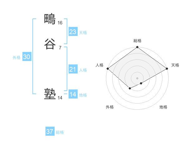 鴫谷 塾さんの地格は14画の1点!