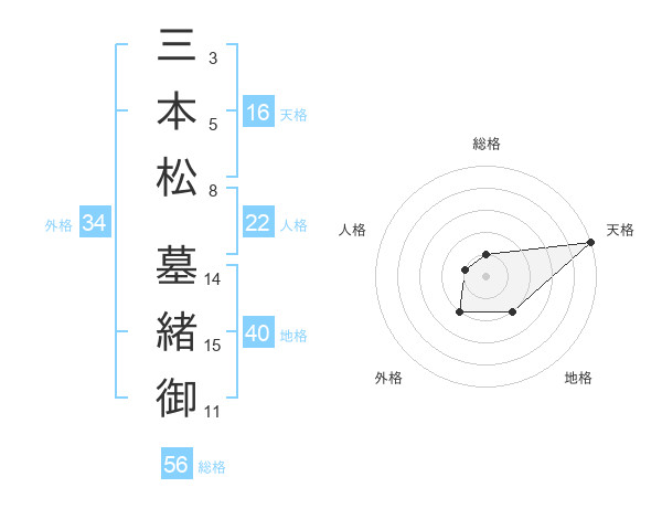 三本松 墓緒御さんを姓名の画数から五運を鑑定