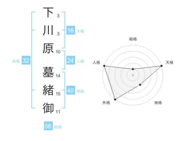 下川原 墓緒御さんを姓名の画数から五運を鑑定