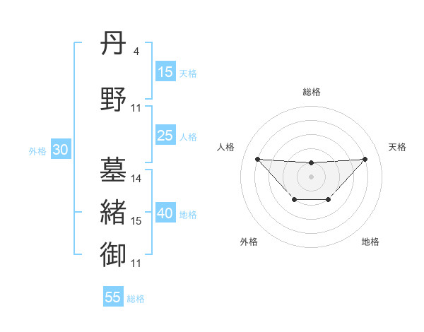 丹野 墓緒御さんを姓名の画数から五運を鑑定