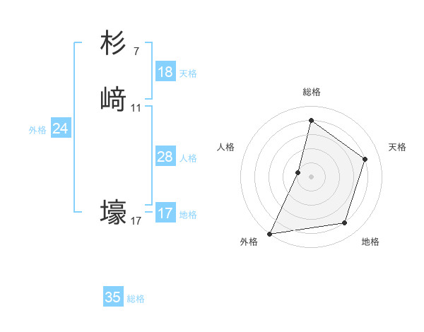 杉﨑 壕さんを姓名の画数から五運を鑑定