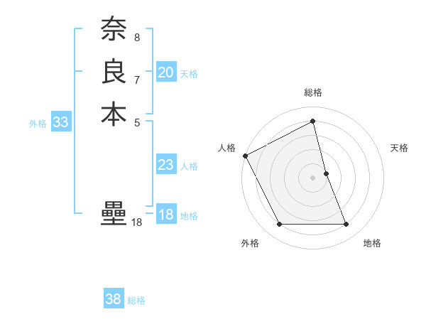 奈良本 壘さんの総格は38画の4点!