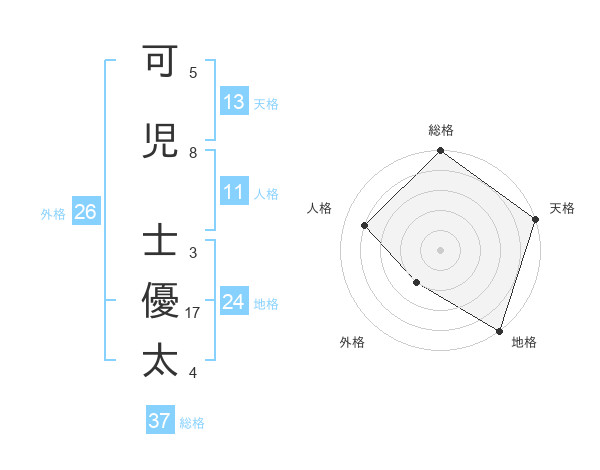 可児 士優太さんの総格は37画の5点!