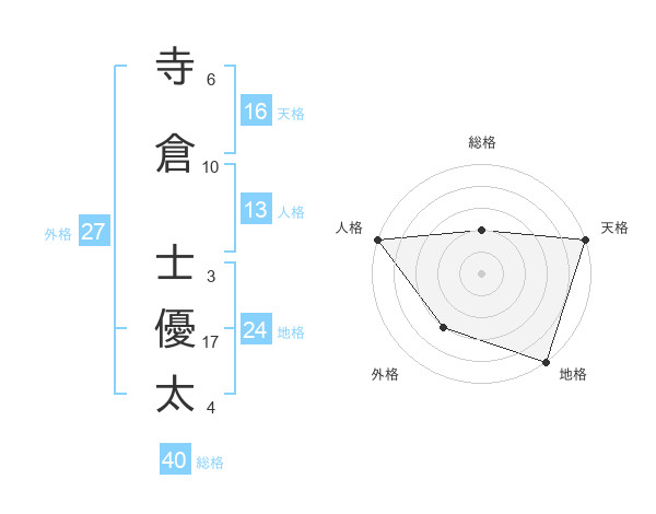 寺倉 士優太さんを姓名の画数から五運を鑑定