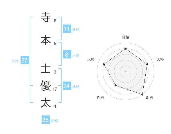 寺本 士優太さんの総格は35画の4点!