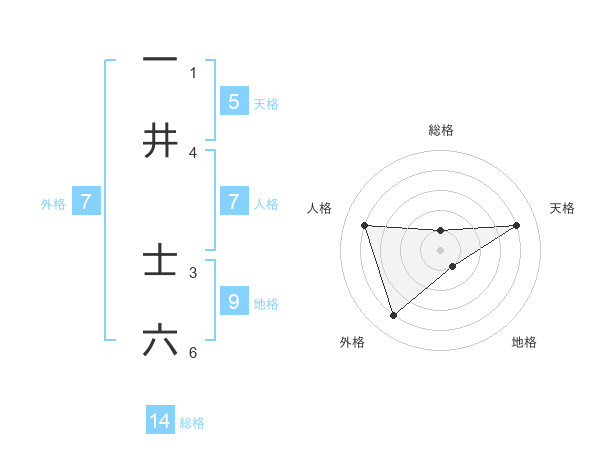 一井 士六さんの総格は14画の1点!