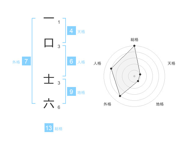 一口 士六さんの総格は13画の5点