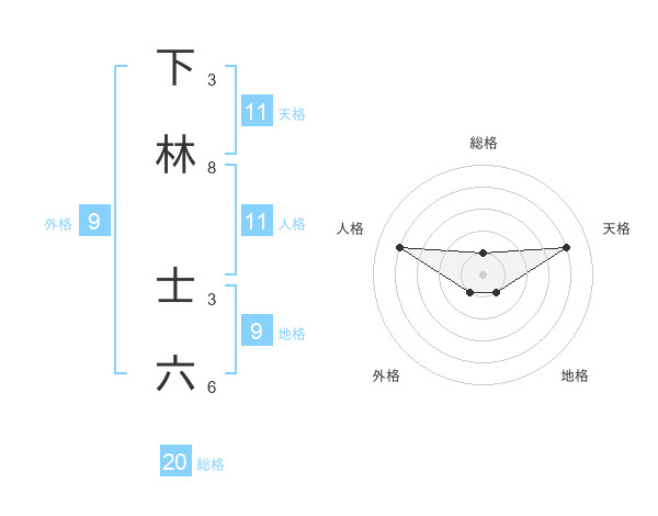 下林 士六さんの天格は11画の4点!
